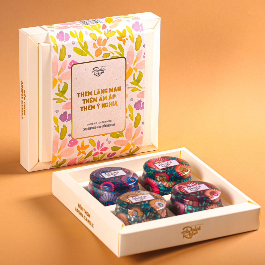 - Tên sản phẩm: Set quà nến thơm Four season, hộp, mẫu Ana, Dalat Retro